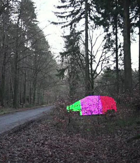 Ok...so here is the pic of the car in stealth mode. Can you see it? It's just to the right of the road in front of the trees.